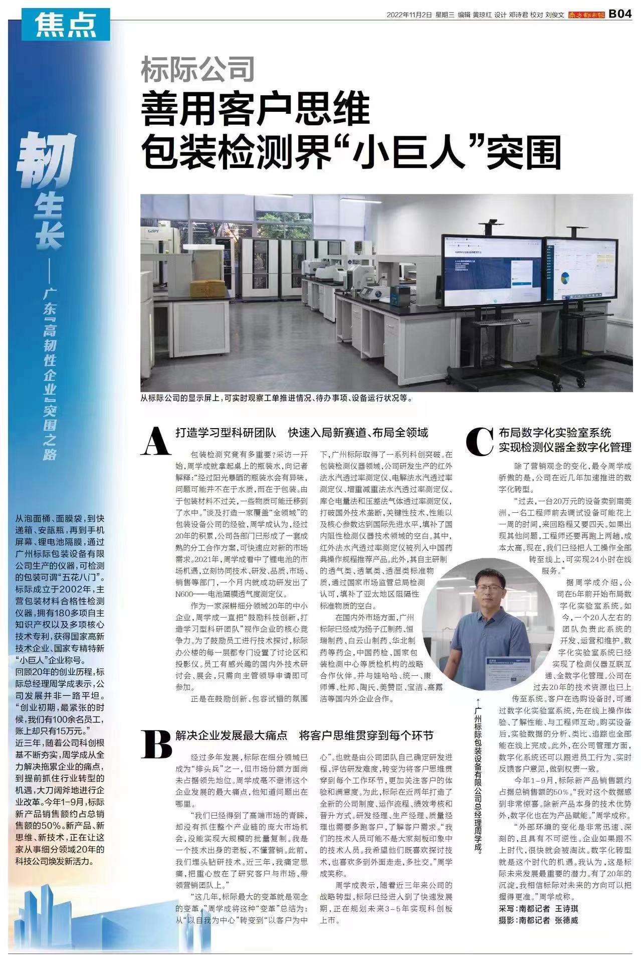 南方都市報采訪廣州標際——包裝檢測界“小巨人”