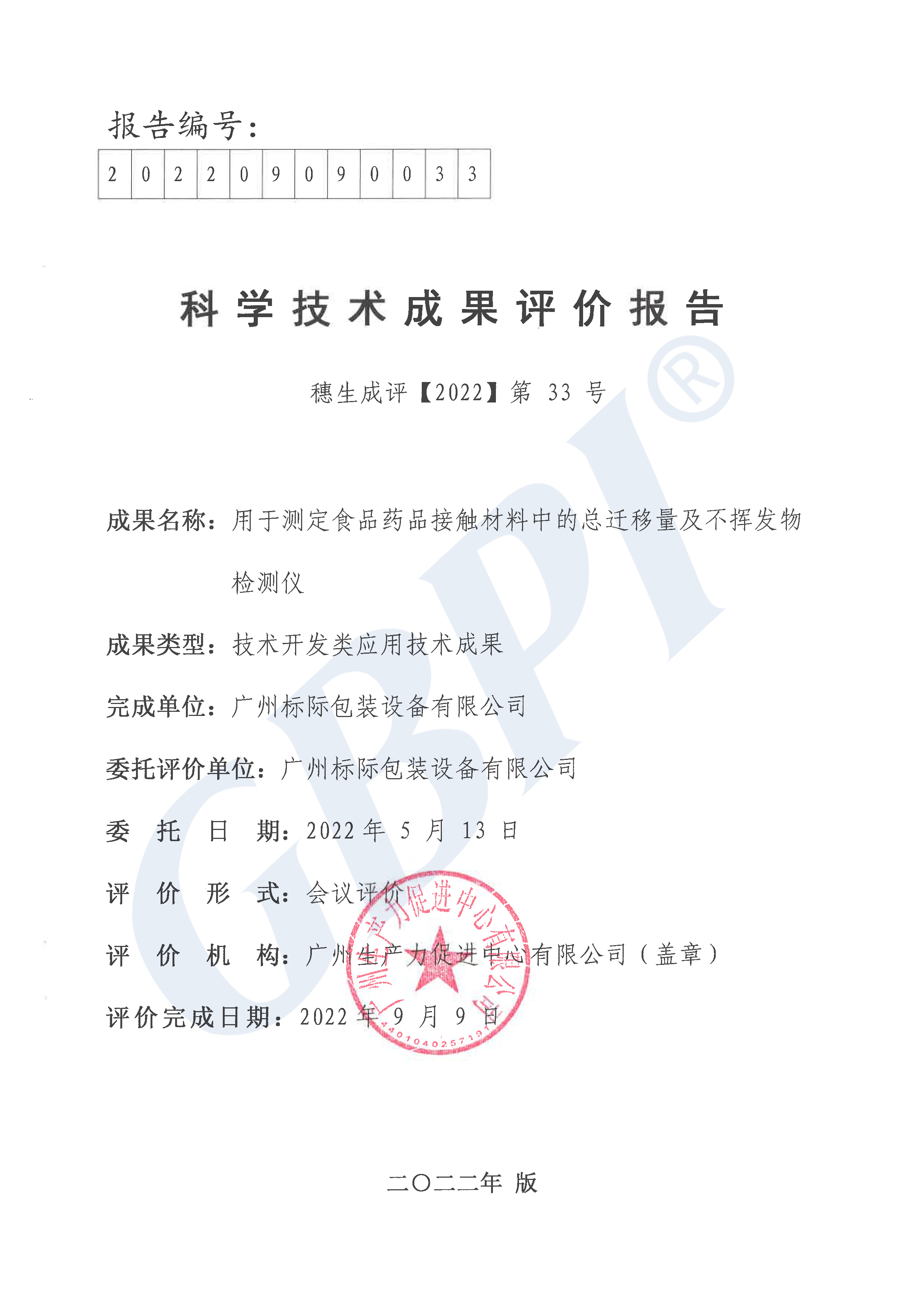 發布時間:2022-09-302022年9月9日,在廣州召開了由標際完成的“用于測定食品藥品接觸材料中的總遷移量及不揮發物檢測儀”科技成果評價會。